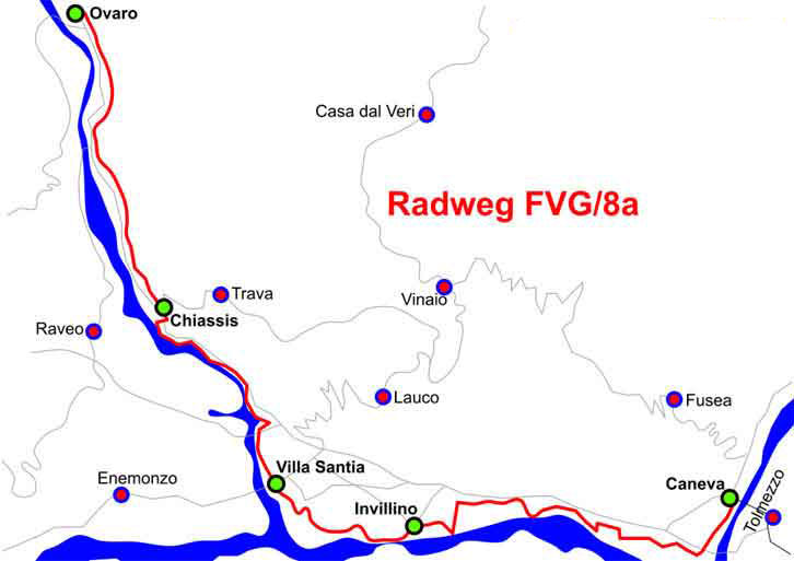 nach Ovaro. Die ersten 10 Kilometer führt der Radweg den