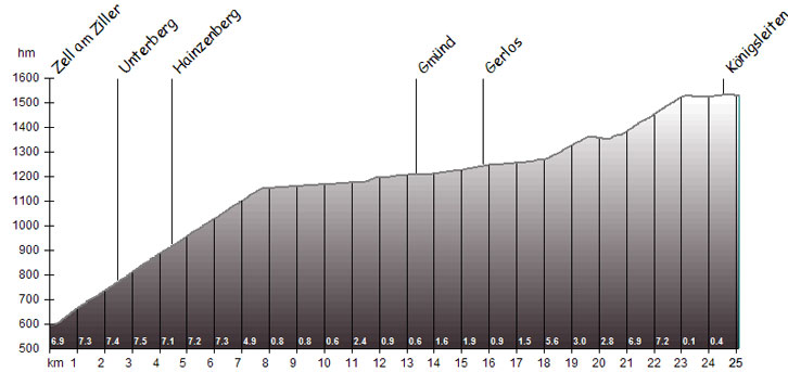 durch die Ortschaft Hainzenberg windet. Nach etwa 7,5 Kilometern