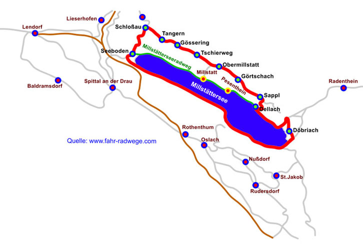 Obermillstatt bis nach Döbriach.Der Radweg am Südufer