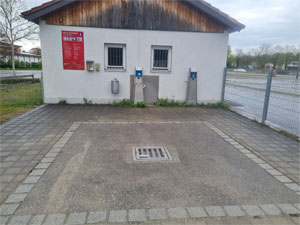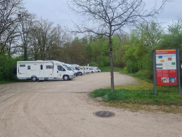 Der kostenlose Wohnmobilstellplatz in der Stadt Neuötting, viele Stellplätze vorhanden. Tisch und Sessel rausstellen ist erlaubt.