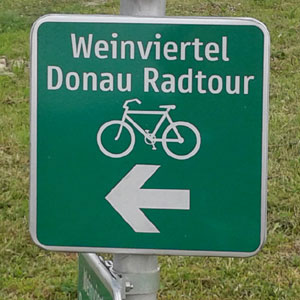 dem Schild nach Wien.In Hagenbrunn der Beschilderung Kreuttalroute.