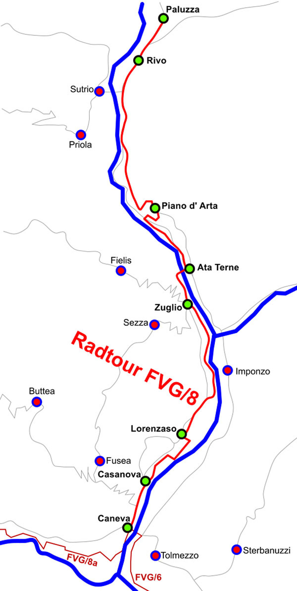 Von Tolmezzo führt der FVG 8 entlang des Flusses