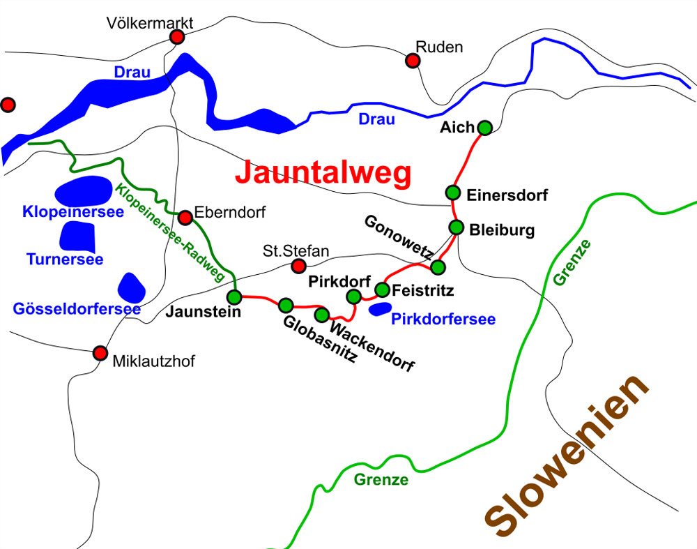 entlang der Karawanken der von Jaunstein über Globasnitz,