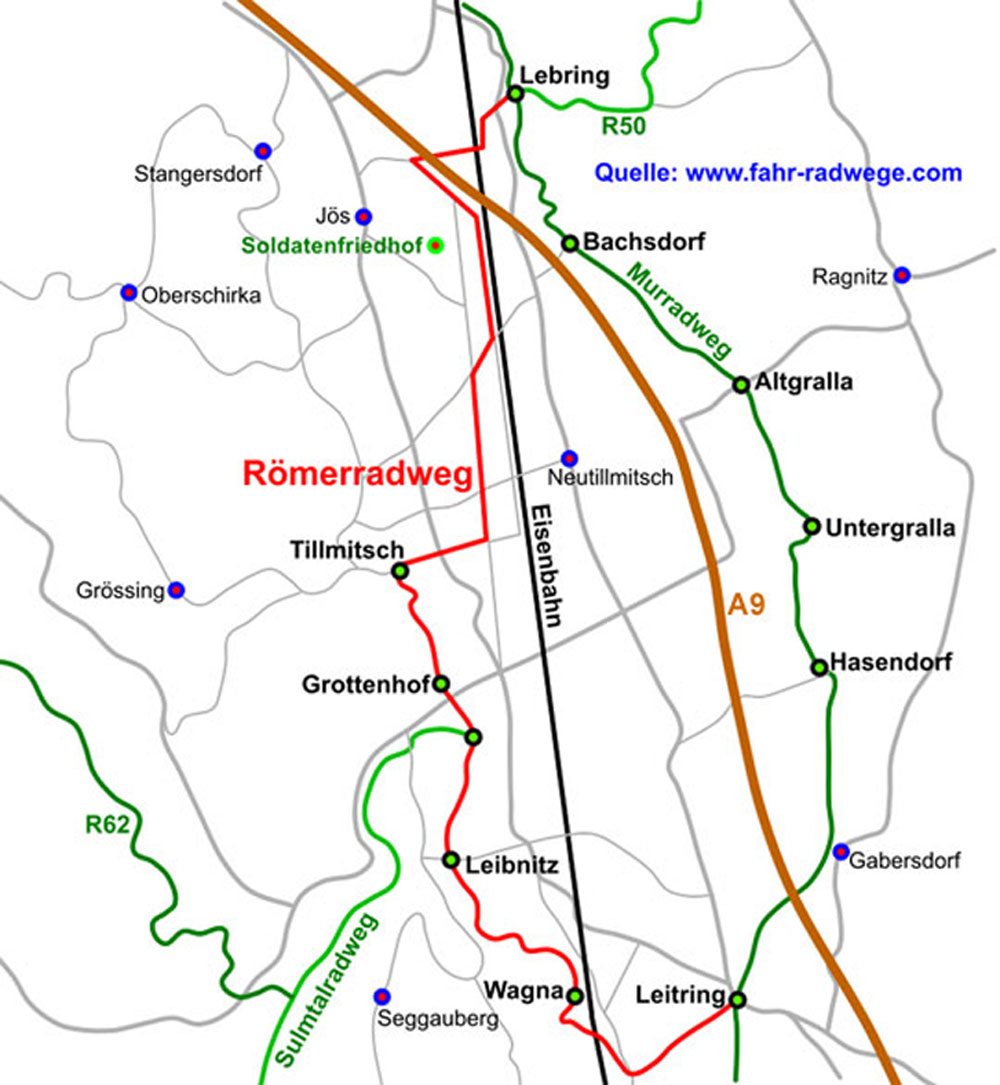 ein Radweg ab, der Sie als Römerradweg rund um die Weinstadt