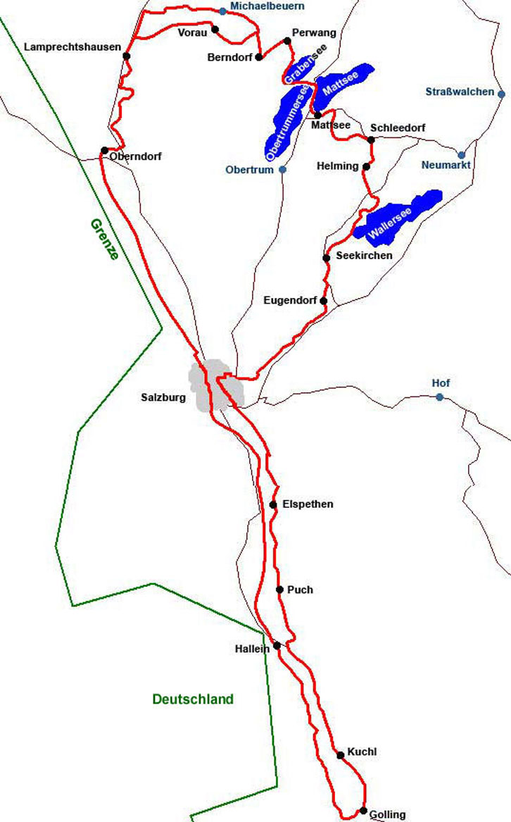 über Faistenau und Fuschl am See, Thalgau nach Seekirchen.