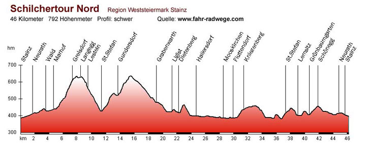 Wald zurück nach Stainz. Deshalb ist auf dem Streckenprofil