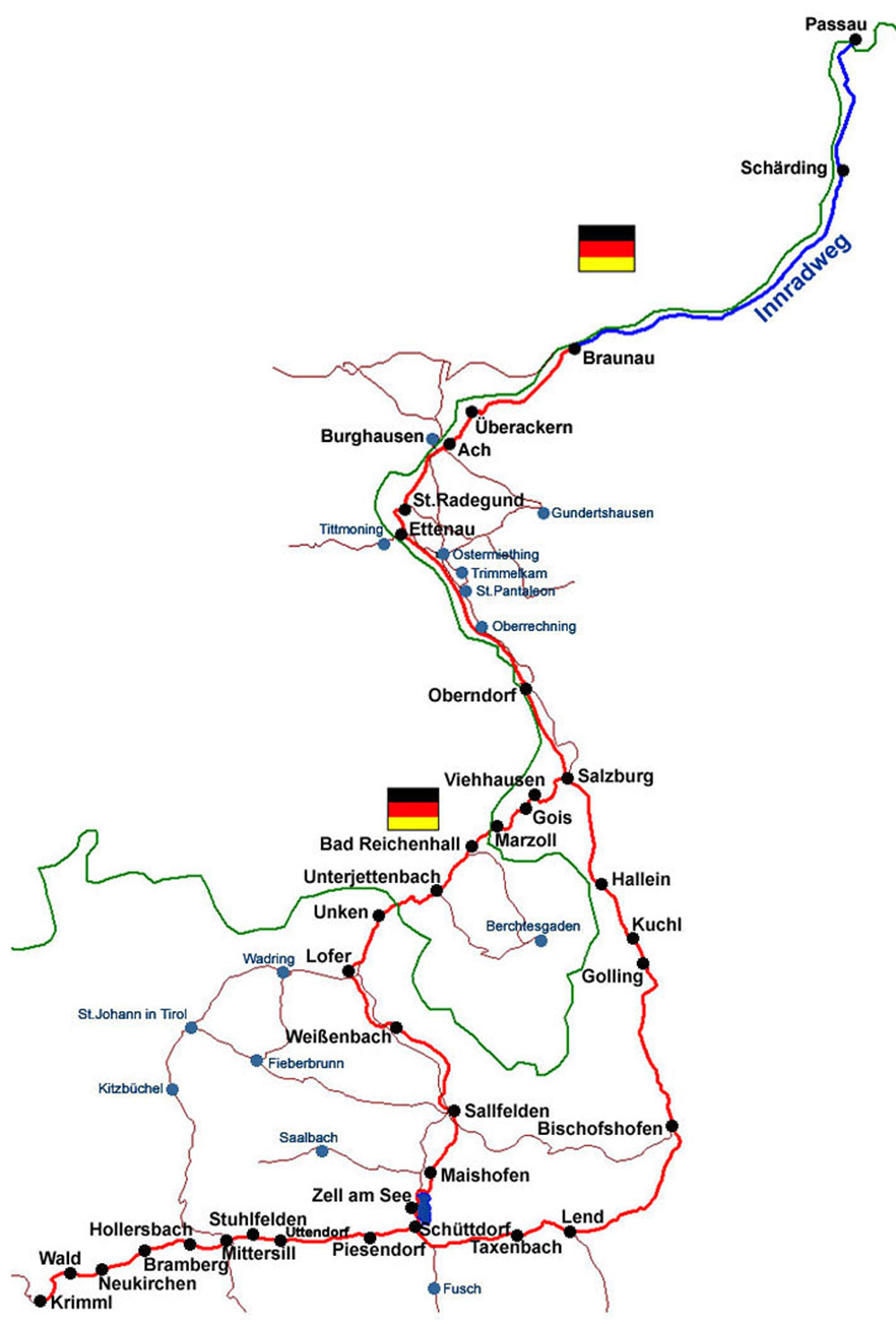 der Flüsse Salzach und Saalach radeln Sie auf Radwegen