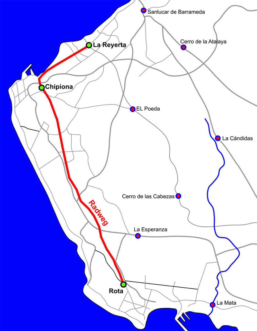 die Uferpromenaden von Rota und Chipiona fahren und dazwischen