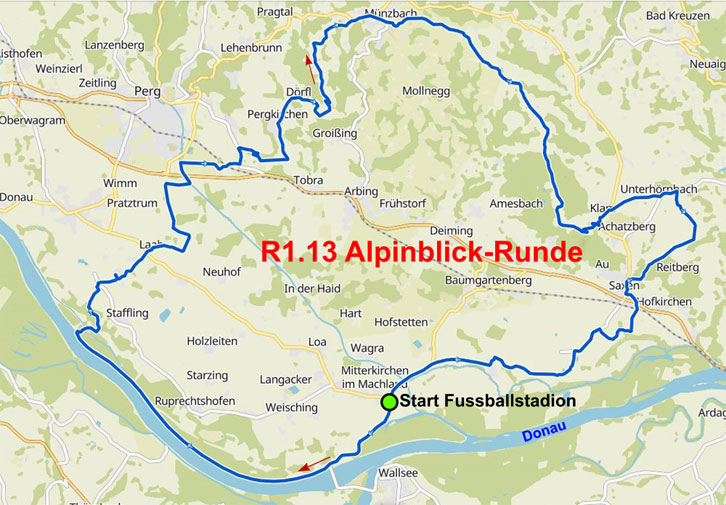 zum Start des Radweges beim Fussballstadion in Mitterkirchen.