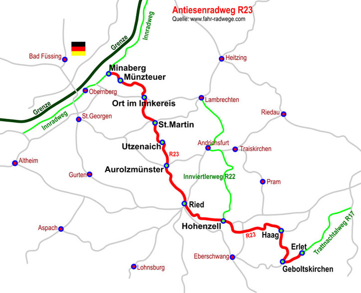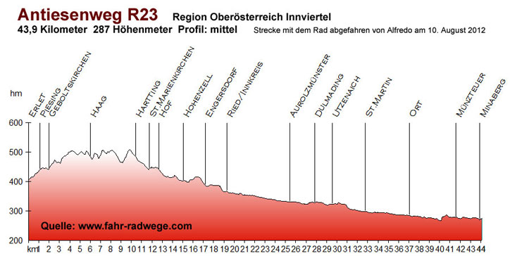 geht es leicht bergab bis Ried im Innkreis. Danach geht