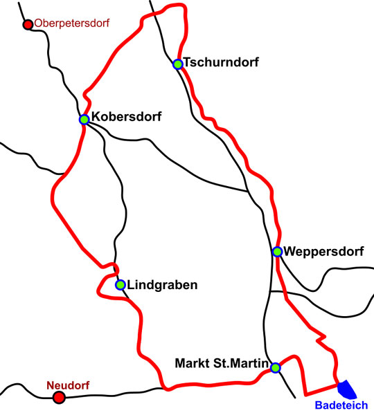 Man kann diese Tour auch in Markt St.Martin beim Naturbadeteich