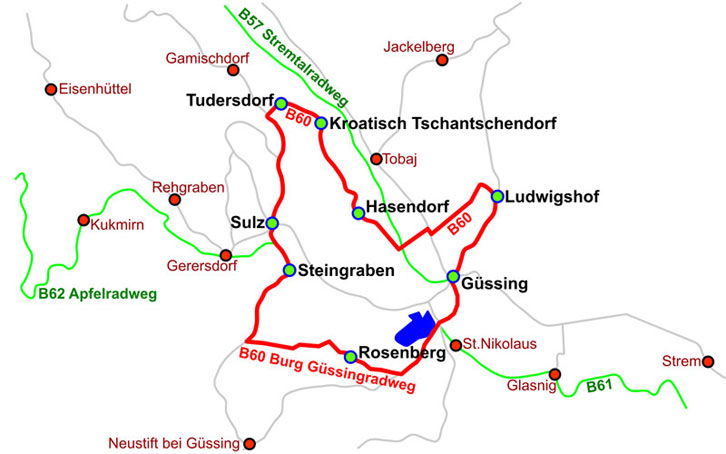 Sie rund um Güssing führt.Es gibt zwei Anstiege