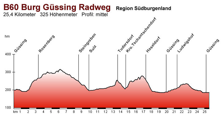 rund um Güssing führt.Es gibt zwei Anstiege zu