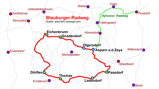 | Start in Asparn an der Zaya beim grossen Parkplatz |