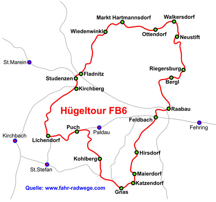 Richtung Hof fahren. In Kirchberg habe ich kein Schild gesehen.