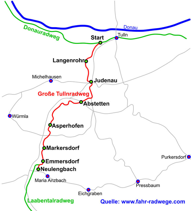 entlang der Großen Tulln bis Neulengbach. |