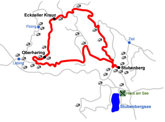 schweren Anstieg von Oberharing zum Eckzeiler Kreuz gibt.