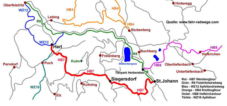 WZ16 bis zum Feistritztalradweg. Ab dort geht es durch die