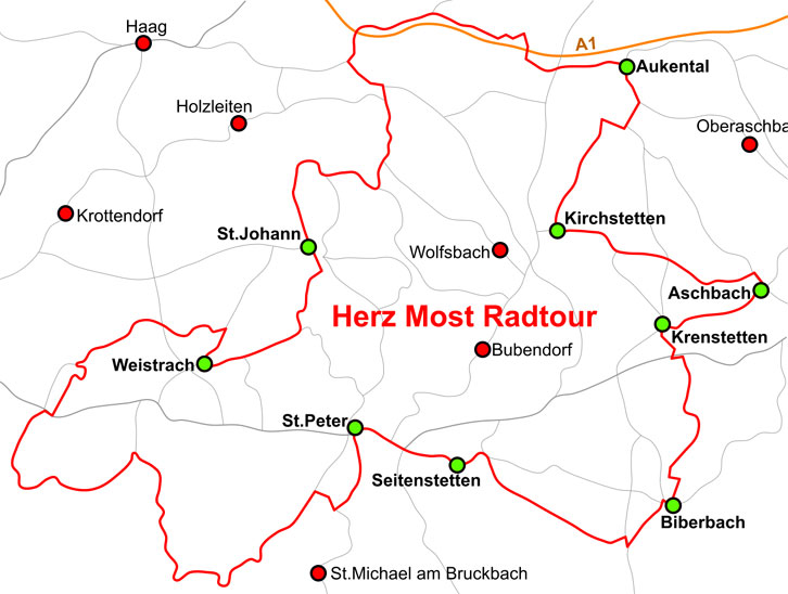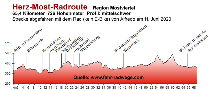 Stift Seitenstetten und führt über Aschbach-Weistrach