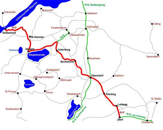 Buchbrunn Eberndorf bis zum Ziel nach Jaunstein radeln.