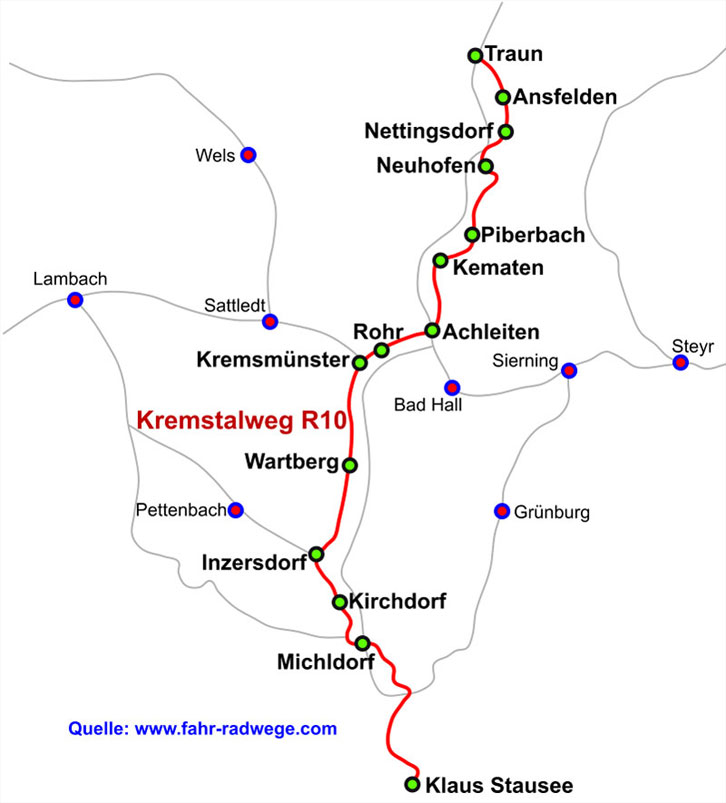 Radweg von der Mündung der Krems bis zum Ursprung in