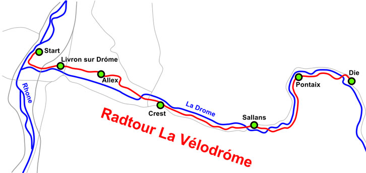 bis zum Städtchen Die .Der offizelle Radweg mit
