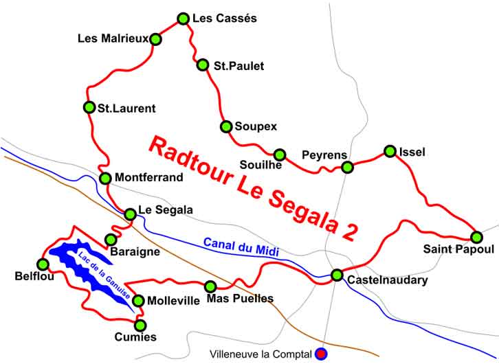 aber kurz nach St. Laurent bis nach Castelnaudary