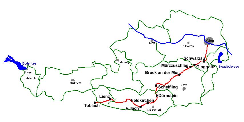 | Die Route von Sillian bis Wien können Sie komplett auf Fahrradwegen fahren. | |