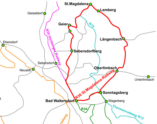 Nebenstrassen durch die Hügel um Bad Waltersdorf