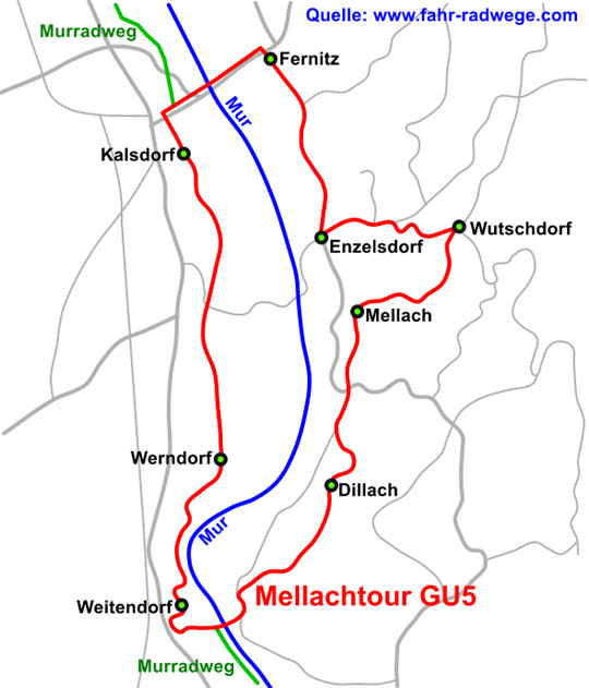 der Mellachtour und biegen links ab und fahren den Berg hoch bis