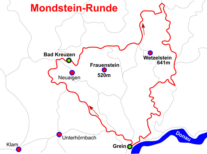 Bad Kreuzen und nach einer kurzen Abfahrt geht es wieder