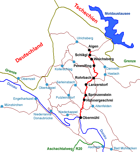 Sollten Sie die Fahrt in Aigen starten, in Obermühl