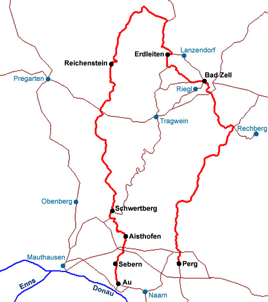 geht es nur mehr bergab bis Schwertberg.Dannach geht es