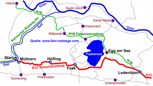 Radweg von Müllnern vorbei am Faakersee bis ins Rosental
