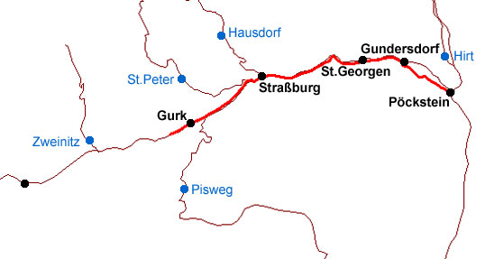 22 km,aber der Radweg endet in Gurk nach 13,4 Kilometern. |
