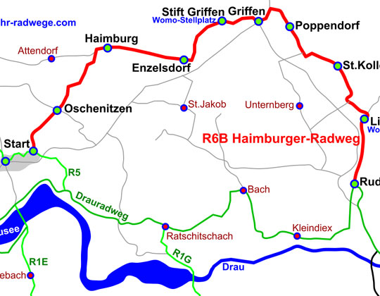 über Griffen nach Ruden zum Drauradweg. |