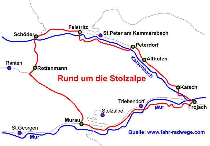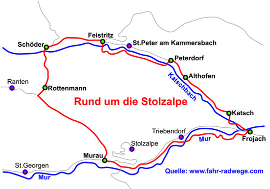 beginnt der Rantenradweg der kurz vor Murau endet.