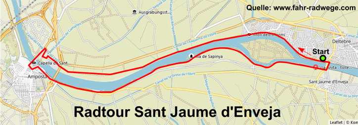 Radweg zirka 3 Kilometer dann geht es bis Amposta zur Brücke