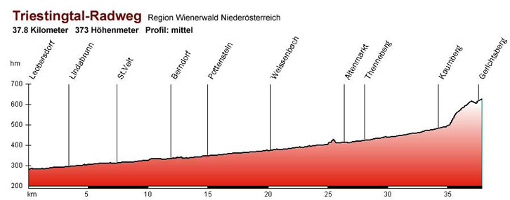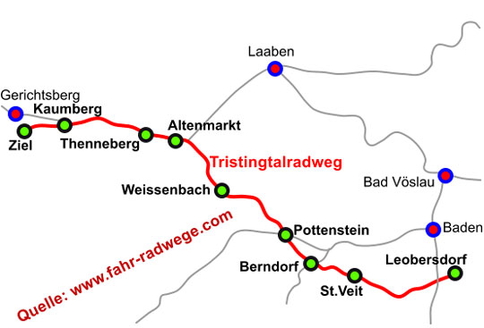 entlang des Triesting-Gölsental-Radwegs sowie Tourismusverbänden.