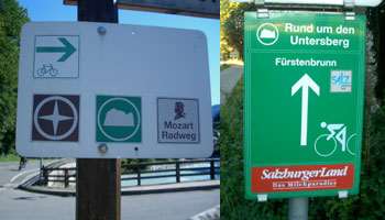 ist eine Tafel, wo meistens noch andere Radwege anschrieben