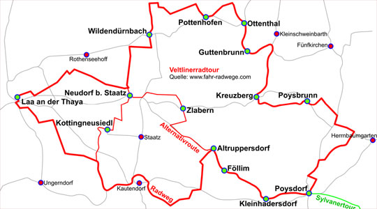 und folgen Sie den Sylvaner- Radweg bis Kleinhadersdorf.