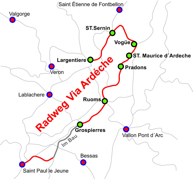 nicht beleuchtet sind. In Grospierres endet der Ausbau