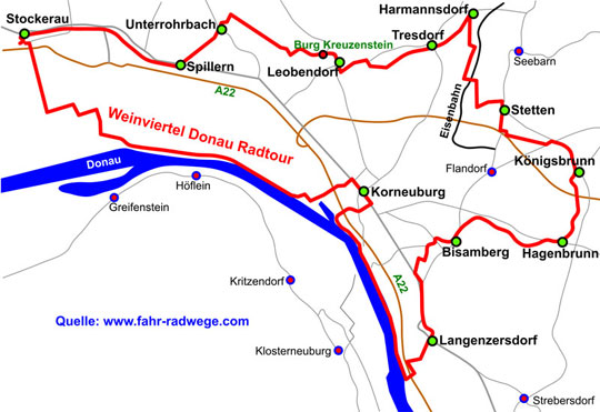 dem Schild nach Wien.In Hagenbrunn der Beschilderung Kreuttalroute.