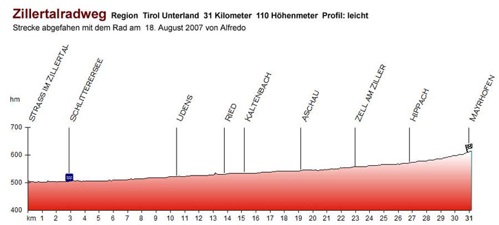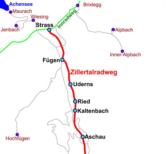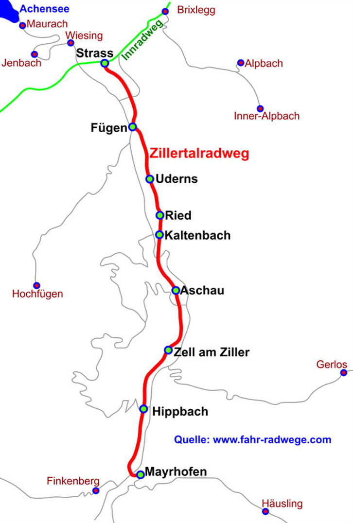 von Strass bis nach Mayrhofen radeln. Für zusätzliche